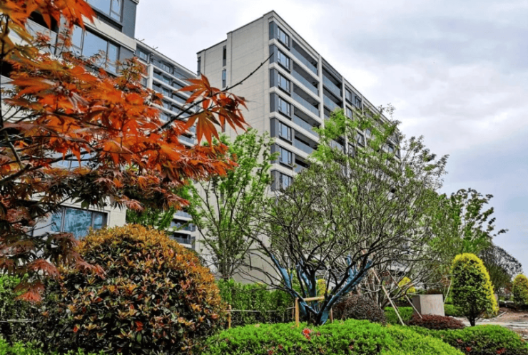 现代简约滨水风格,外立面以浅色系涂料 + 玻璃为主,线条简洁;社区内部有中轴水景、阳光草坪、林下休闲区、滨水步道;双水系环绕,步行可达迪荡湖公园,景观与水系融合,日常散步舒适;人车分流,保障老人小孩安全。
