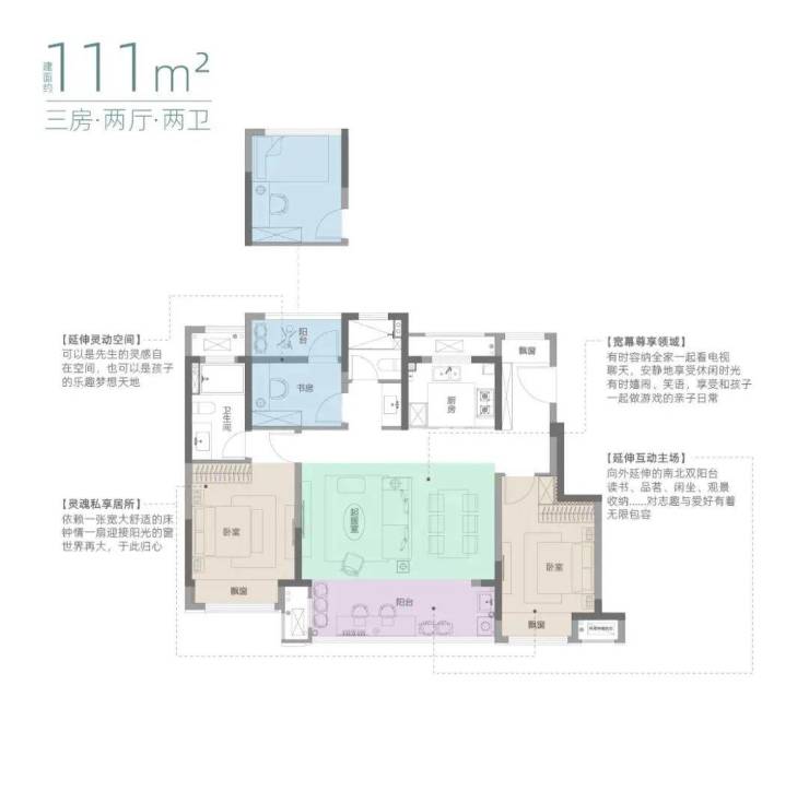 建面约111㎡三房两厅两卫