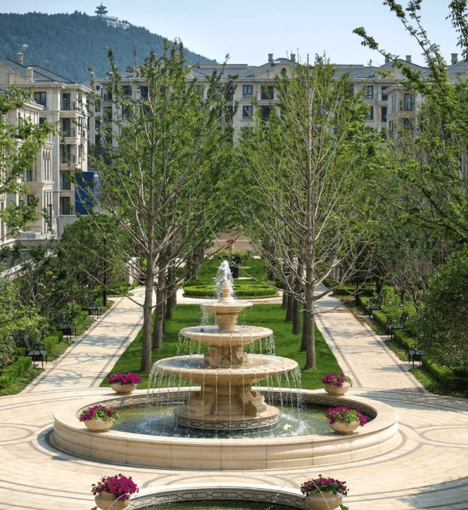 法式建筑线条装饰感强,形式对称,仪态庄严。细节处理上,廊柱、雕花、线条均能呈现出浪漫的典雅风格。这些文艺复兴时期的古典气息,在东方润园法式别墅的产品中得以再现,从高处俯瞰东方润园,整个建筑群气势恢宏。