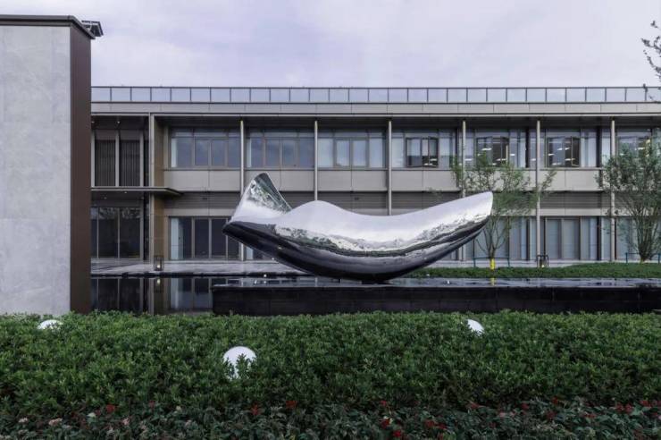 雕塑浮于水面之上,