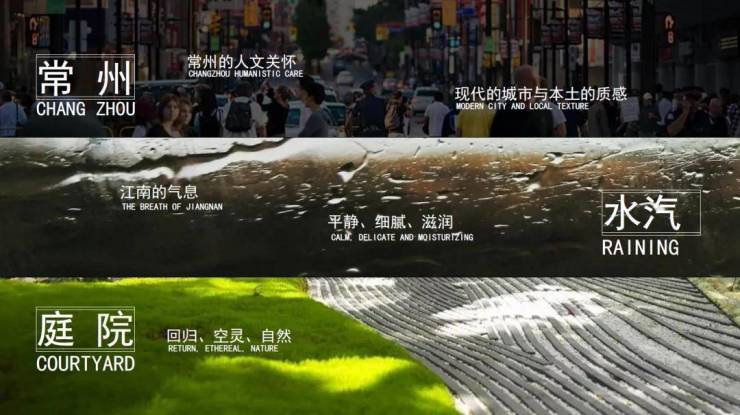 设计概念源自常州这个城市本身的记忆与印象,将水汽、景庭、绿野的元素融入江南特有的生活图景,沿寻常州城市肌理,讲述常州故事。