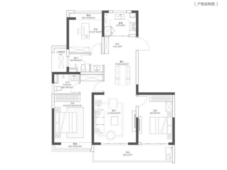 建面约125㎡几乎没有过道设计,空间利用率极高,南向连接约7米双联阳台,室内全明通透。