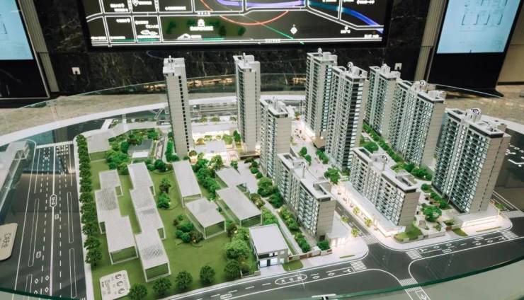其立面选取现代简约风,高级灰色调搭配,大面积玻璃运用,园林引入温润森系的现代风格景观体系。
