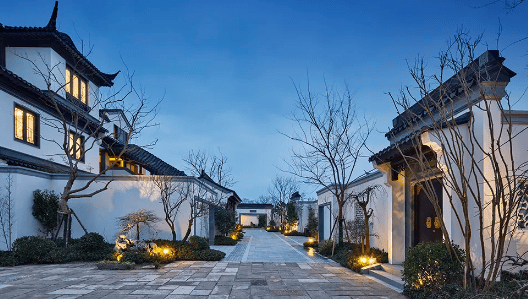 江南水乡风貌:地处江南水乡平原,周边河流环绕、水系纵横,保留了典型的江南水乡景观,白墙黛瓦、飞檐游廊的中式院落与自然环境相得益彰,营造出诗意栖居的氛围。