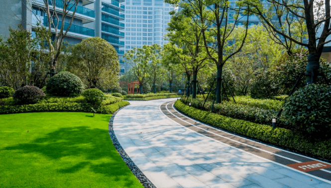 绿化率:40%,包含 1.8 万㎡中央景观园林,设计为 “两轴一环七园” 式社区。