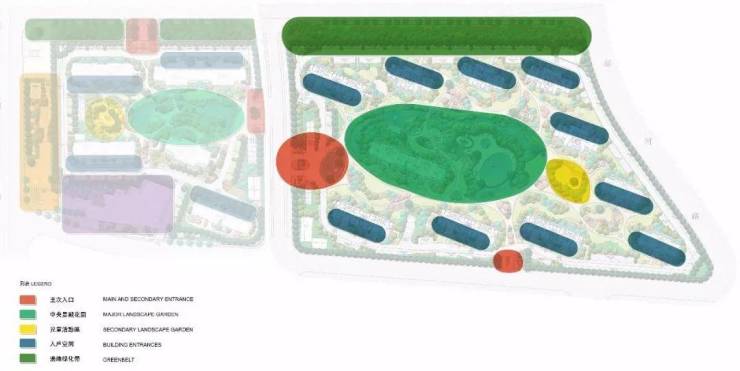 主入口及次入口均列植树形优美的特色大乔木,以营造庄严的迎宾感。下层种植季相色彩丰富的各种灌木,强调入口区活力且愉悦的归家氛围。