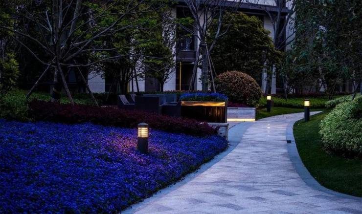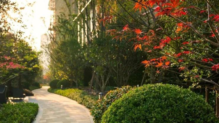 在宅间及建筑入口配置花期较长的开花乔木;中层搭配红枫、海棠、樱花;下层种植杜鹃花,山茶花、紫荆等各种开花灌木,以及色泽豔丽的时花,让居住者在出入之间时刻感受著这一份春风宜人。