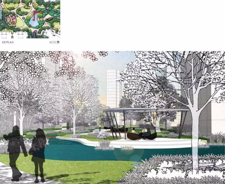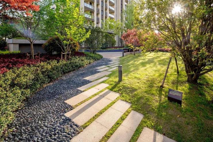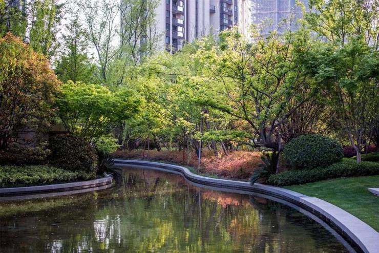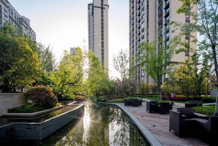 仁恒·棠悦湾一改中式苏州园林典雅秀丽的小家碧玉形象,通过创新的现代手法将当代风格赋予楼宇之间、赋予草木流水之间。自然式的空间佈局由开阔到紧凑,再适当“放开”,有收有放、简繁得当。其间搭配现代简约的小品与构筑物,顺应了现代人乐于追求简单生活的潮流。