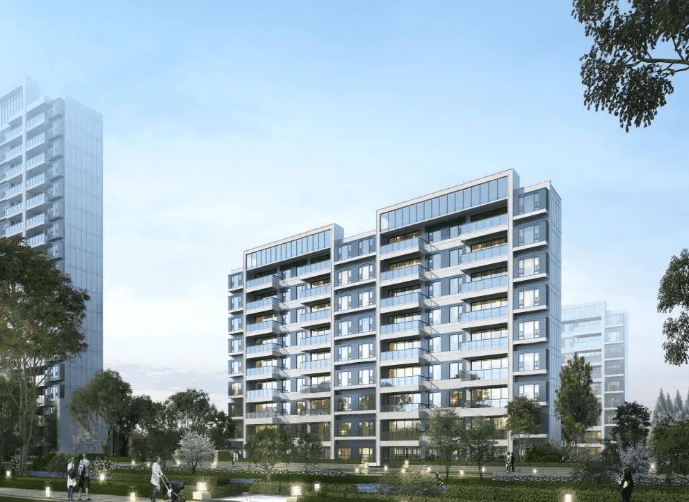 交付标准:精装交付,配置中央空调 + 新风系统、方太厨电、同层排水;外立面浅暖米色真石漆 + 木纹格栅,社区为 “一环五境三园”,配 2.1 公里夜光跑道、儿童游乐、老年康养区,最大楼间距约 65 米。