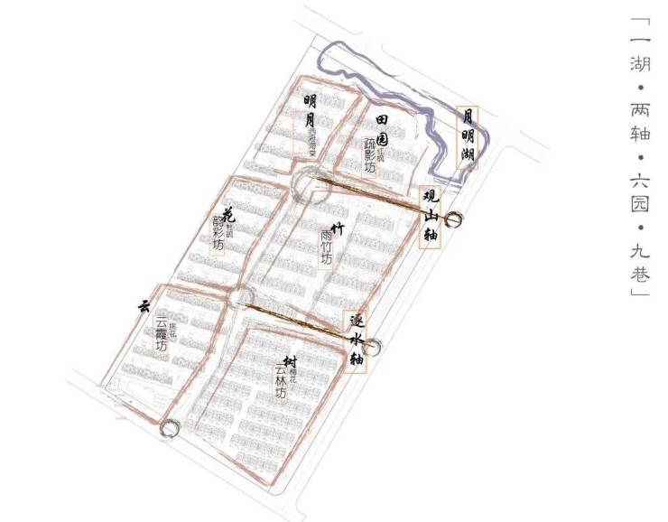 本案采取货值最大化的排布,空间利用率佳,对外更为开阔。设计以桃源行为文化灵感来源,依托房型分布规划了“一湖•两轴•六园•九巷”的文化格局,绿植交映下,现代建筑规制与东方人居理念完美融合。