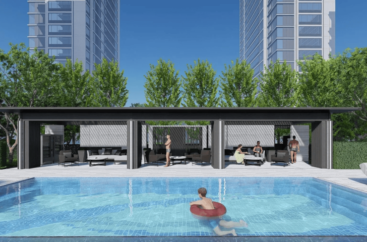 精装标准:装配式精装,环保达日本 F4 星标准;标配品牌厨卫、新风系统,公建化现代立面,社区有双轴一环七重境景观、全龄活动区、泳池等。