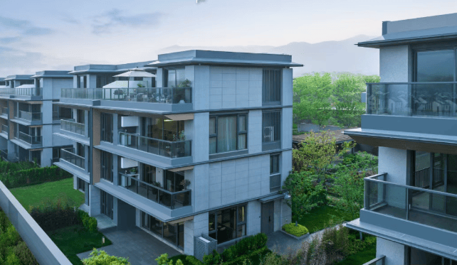 建筑风格:融合现代与传统元素,独栋别墅、联排别墅、叠拼别墅等设计精美,外观典雅。