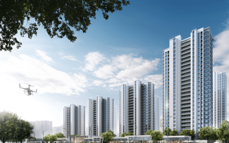 共规划7栋20-27层高层住宅。通过方正式布局,运用大面积三层中空玻璃组合,建筑高低落差,形成美好景观视野与美丽的城市天际线。