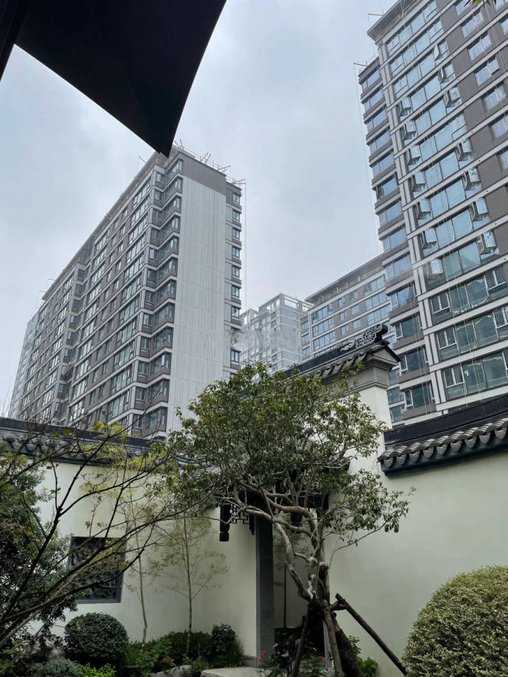 建筑设计:采用新中式建筑风格,建有 42 栋联排别墅、13 栋叠墅和 22 栋洋房,中轴对称,礼序井然,同时融入现代建筑元素。