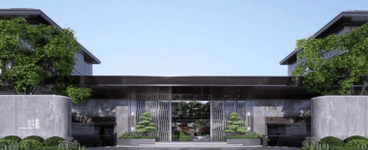 现代中式风格建筑立面,强化了景观的整体性与共生性,讲究线条的简约、质朴,注重建筑的流线性,又包含中式风格的点缀。外部的立面采用石材、铝板、真石漆搭配,顶部还配有灰色坡屋顶设计,结合统一的公建化玻璃窗,营造典雅时尚的建筑形象,项目外立面1-2层全部选用干挂石材,铝板线条,大气美观