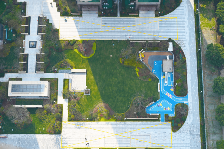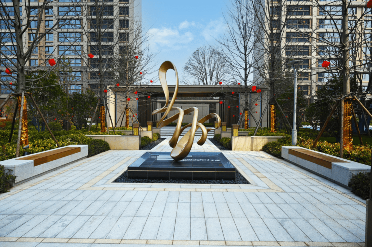 园林景观:小区内打造“一轴四园”园林景观,融合高耸乔木、繁茂草坪、叠水景观、香槟色雕塑等元素,营造立体多维的景观空间,部分区域可作为社区剧场、露天影院等休闲场所。