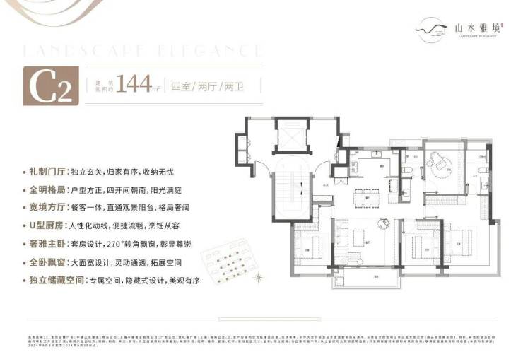 建面约144㎡四室两卫两厅: