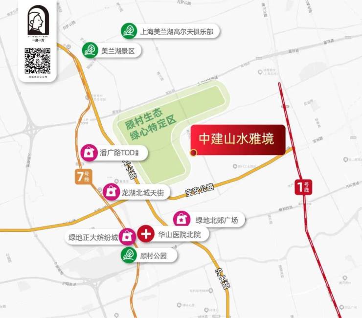 项目紧邻顾村生态绿心特定区,坐落于周家浜-白荡河景观带与潘泾路景观带的交汇处,享有得天独厚的自然资源。