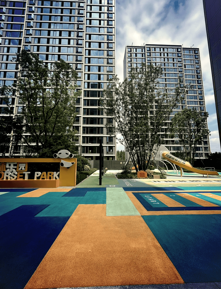 社区规划社区以 “一轴四组团” 手法打造院落式自然雅境,规划有不规则镜面泳池、探险乐园、玻璃花房等景观。同时设置架空层泛会所和约 500㎡运动 CLUB,涵盖休闲、学堂、健身等全龄段活动空间,园区采用全石材硬质铺装,居住体验舒适。