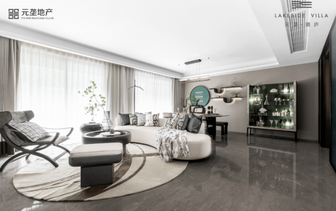 采用当代东方美学,简约线条搭配标志性东方屋檐,景观融合水系与庭院,强调开阔通透的居住感。