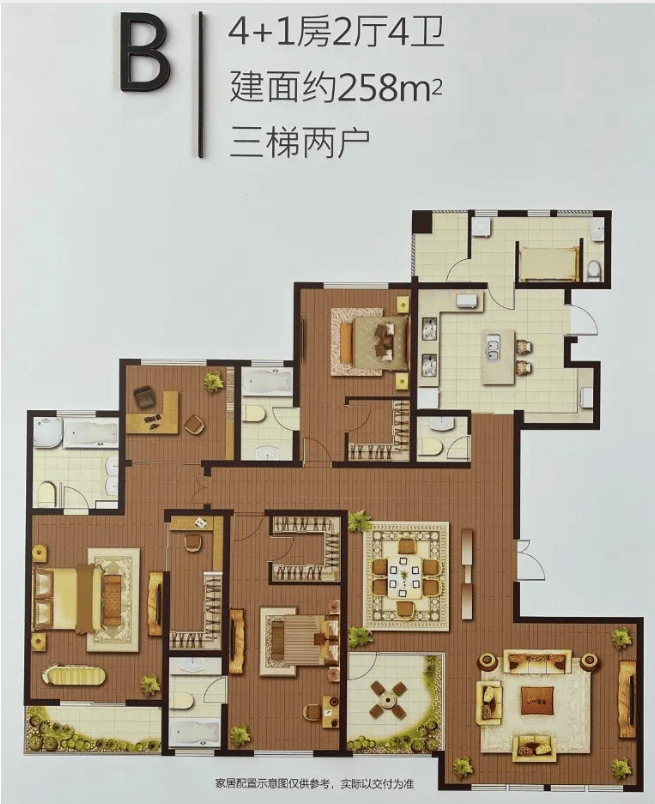 复式:配以极少的顶层复式,复式面积 360-450㎡。
