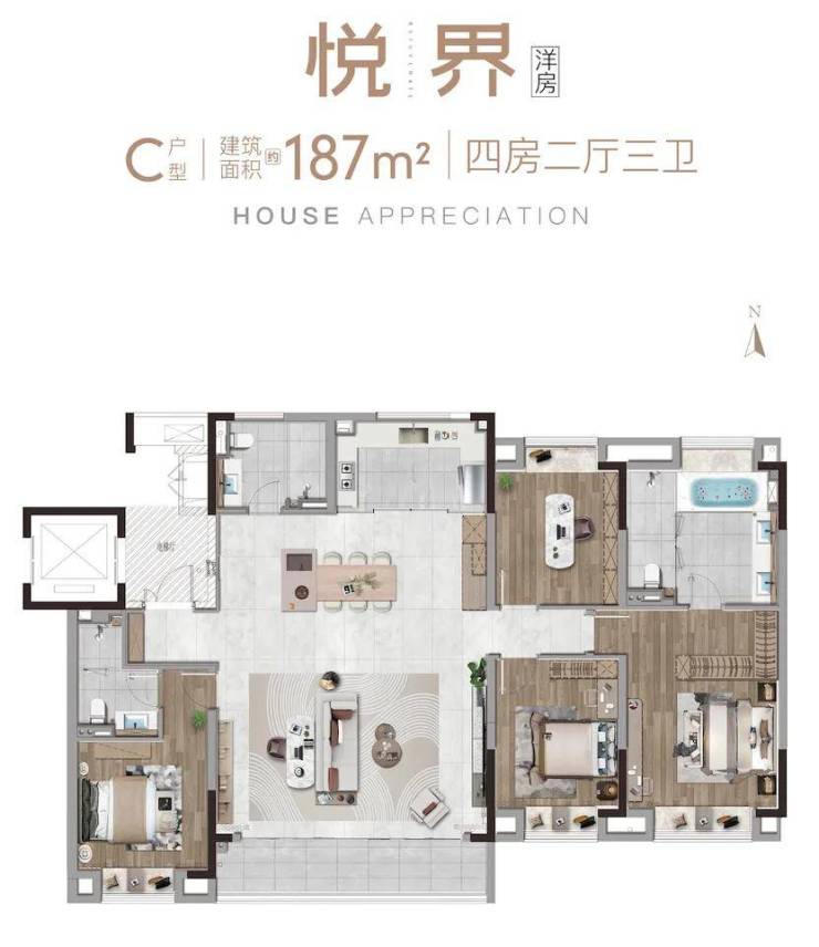 花悦江南,作为昆山城投首入花桥的高端系作品,即以沪上“豪宅”的标准来构建产品,真正将建面约140-187㎡藏品级洋房打造为享受型的舒居空间,且在高层林立的花桥区域内,容积率仅1.8的花悦江南作为难得的低密洋房,更是独一无二的品质生活所在。