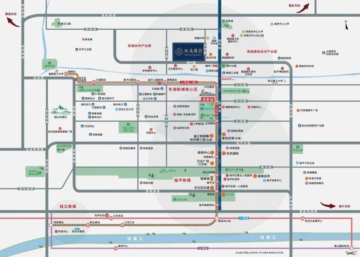 它和东湖新城同在杭州城市中轴线荷禹路之上(临平段称荷禹路,禹越段称镇西路),共享临平国家级的经济技术开发区产业发展利好。