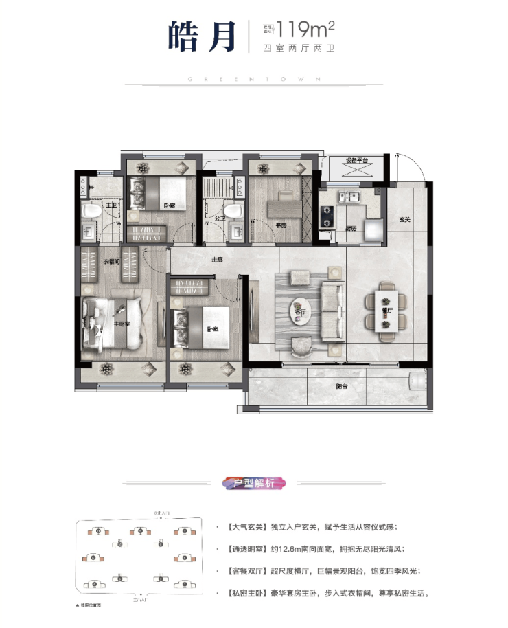 苏州吴中绿城朗月滨河售楼处电话丨119平(四室两厅两卫)
