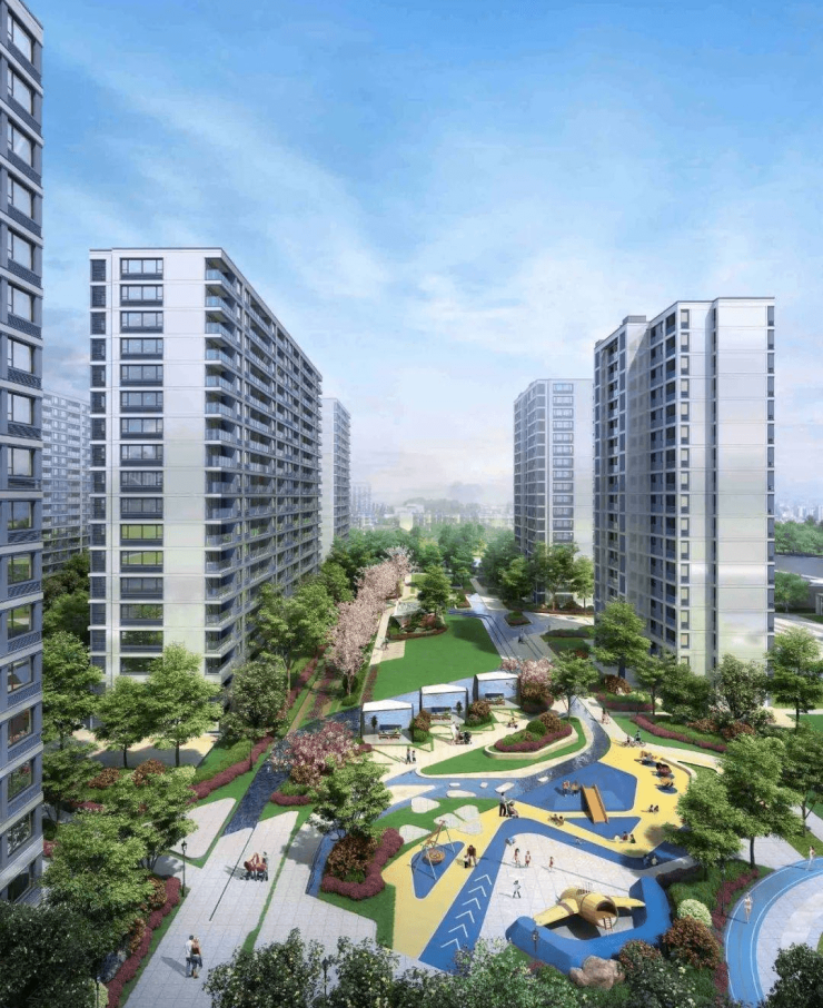 项目内部打造“一轴两环六大空间”的景观布局,将三洋湿地搬进园区,中心水系景观、银杏树阵,多功能架空层打造。美景由外延伸之内,目之所及,皆是风景。