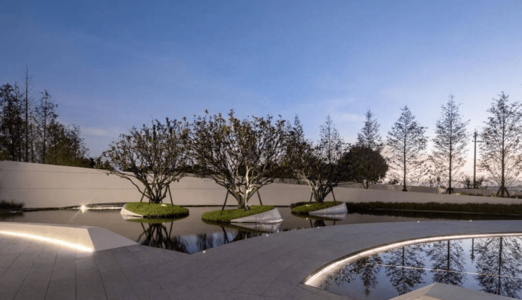 项目位于浙江温州市区南侧,周边已有较成熟居住区。地块毗邻三垟湿地公园,三面环绕景观河道,景观资源极佳。我们希望通过设计将生态湿地的地域特性延续到场地内部,使城市回归自然,打造雅致岸居,与山水交融的生态居所。