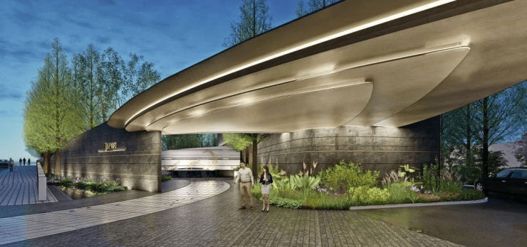 难得三面环水的半岛形态,筑就城市中轴一方私密天地。沿河设置长约800米的环形滨水景观漫步带,散步观景两不误。