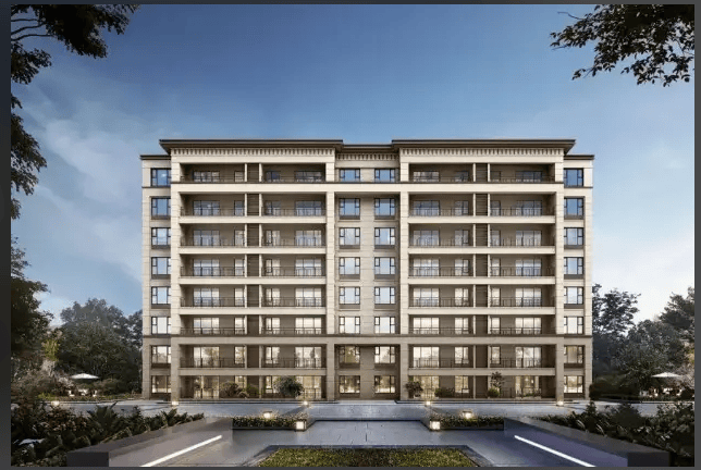 建筑特色:采用新亚洲建筑风格,以明快的浅米色及深咖色为主色调,运用高透玻璃、真石漆等材质,通过轴线对称、三段式构图等手法,营造出具有仪式感与生命力的建筑外观。