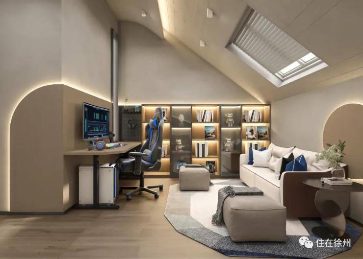 还有精心打造的星空阁楼空间,让休闲多了一份对未知的探索。动静结合的区域,可以满足日常休息和学习,也能满足一个人或者一群人的休闲娱乐。