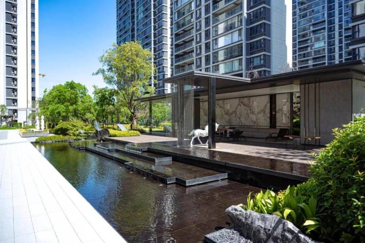 低密园境,演绎雅致生活日常。项目以2.2的低容积率,打造“一轴两环三庭五园”的新中式园林景观,叠石理水、曲径通廊、四季花木相映成趣,营造出“一步一景,步移景异”的诗意氛围。社区内规划中央景观花园、全龄活动区、健身步道、邻里会客厅等多元空间,清晨在林间慢跑,午后在花园小憩,傍晚与家人漫步谈心,各得其乐。社区外,红梅公园、东坡公园双园环绕,闲暇时带孩子踏青游玩,感受自然与人文的交融,在繁华主城寻得一方静谧天地。