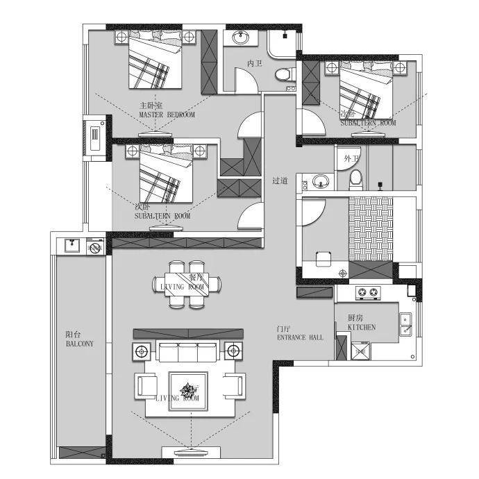 ○ 敲除墙体,将阳台空间纳入东边次卧,增加室内空间;