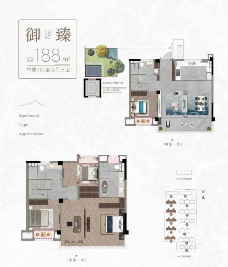 【产品类型】建筑面积约103-120㎡墅境洋房/建筑面积约165-236㎡静美墅居