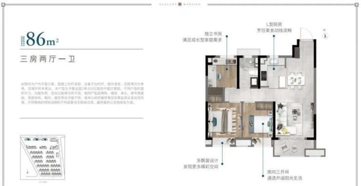 南北通透格局方正,动静分区,三开间朝南,所有卧室均带飘窗,在无形中扩大空间尺度,让阳光和景观全面渗透。植入LDK一体化理念,开放式厨房,打破界限思维,有效利用空间,增加生活的互动性。
