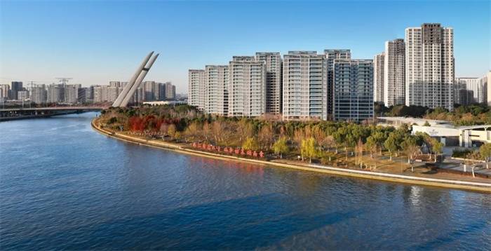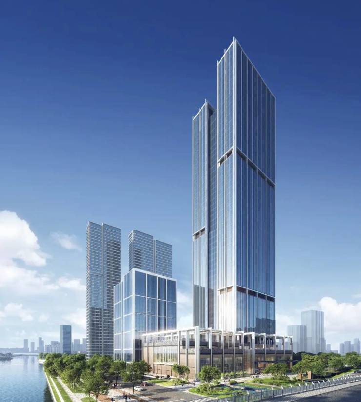 楼栋规划:包含 2 栋住宅大平层、超 5A 甲级写字楼、康莱德酒店、滨水商街及公寓。