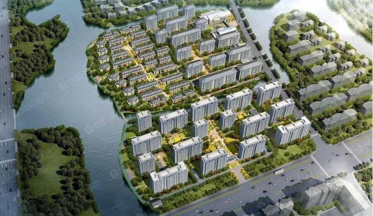 整个项目分为滨河院墅和臻景洋房两个区块。