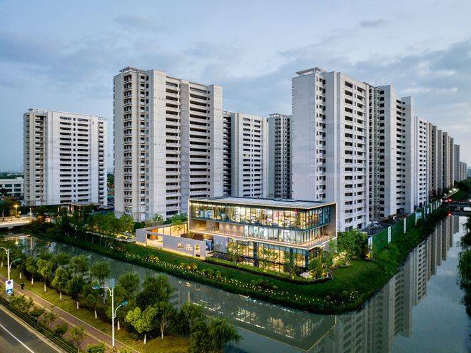 建筑风格:采用新东方感的屋檐设计,凝练太仓的文化底色,白色、咖色作为主色调的金属感外立面,呈现摩登现代生活方式。