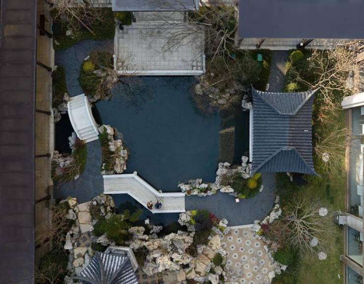 聘请香山帮传人、桃源匠人黄勤院长亲自操刀设计,采用古典中式+现代中式的组合,汲取中式合院门头、街巷、院落元素,再现“四进归家”礼序,达到深藏若虚的江南园林风格。