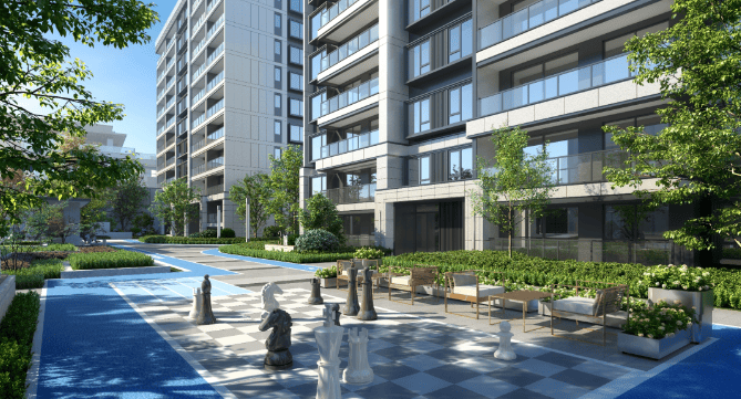 建筑设计:洋房的外立面以 “绿建三星” 的标准匠造,高级灰为主基调,搭配金属线条与大面积的 “三玻两腔” Low-E 玻璃,通透而明朗,轻盈而摩登。