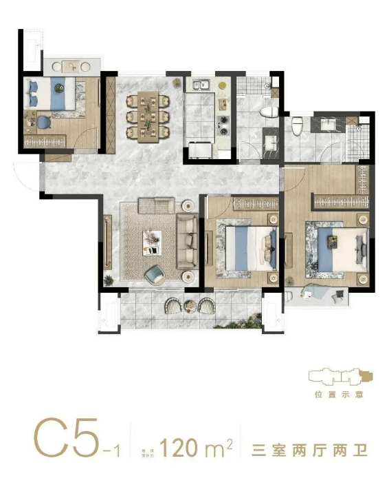二期毛坯高层:主力户型有 89㎡的两居室,全明设计,动静分区;99-120㎡的三居室,南北通透,双卫布局;141㎡的四居室,大横厅,主卧套房。