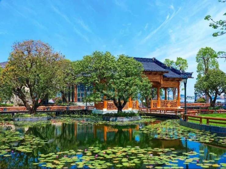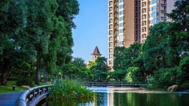 绿树林荫、水榭亭台、小桥流水,每一帧的画面都美到极致,将一座公园搬入社区,丝毫不为过。