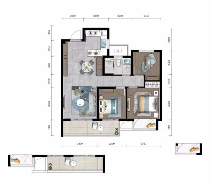 3开间朝南,四季清风阳光常伴;双卧室朝南格局,三卧飘窗纳景设计,揽尽园林中央的缤纷风情;餐客双厅一体化,连接鼎阔景观阳台;多功能主卧套房,独立超大的卫浴空间,保持壹号人物的尊崇起居格调。