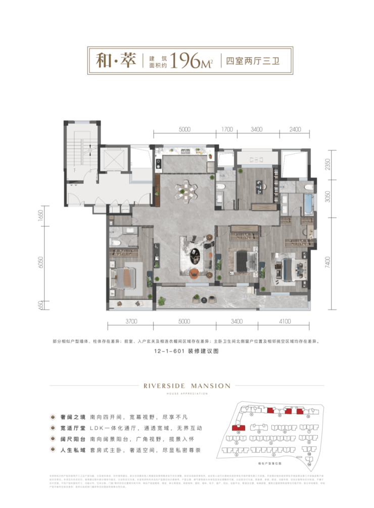 得力·和麓园的魅力,还来自于它高端改善的产品定位。其主力户型143㎡、196㎡为四房两厅三卫设计,实现了功能改善和尺度改善的兼顾,完美契合二孩、三代同堂家庭的需求,堪称高阶人物收藏城市公园且同时实现品质高改生活的不二选择