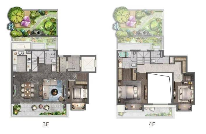 对于购房者来说,“实际可使用面积”是切切实实关系到日后居住的。信达督府天承叠墅产品做到了户户有赠送。其中,下叠235㎡户型赠送南院;中叠约210㎡户型赠送北院;上叠赠送露台。