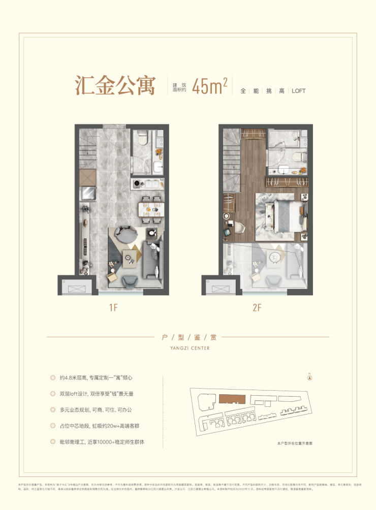 约4.8米挑高,创想无限可能;集商业、居住、办公、娱乐等为一体,双倍空间翻倍享受;毗邻南理工、江阴高级中学,高净值人群的第二生活空间。