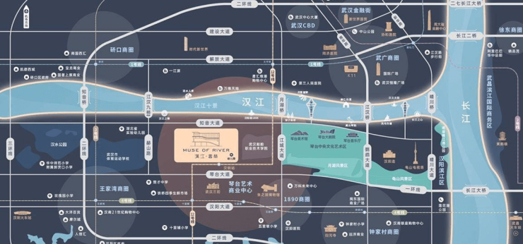 琴台艺术中心商圈、王家湾商圈、钟家村商圈、武广商圈、汉口K11、地块内自带3.1万方雲赫艺术商业街。