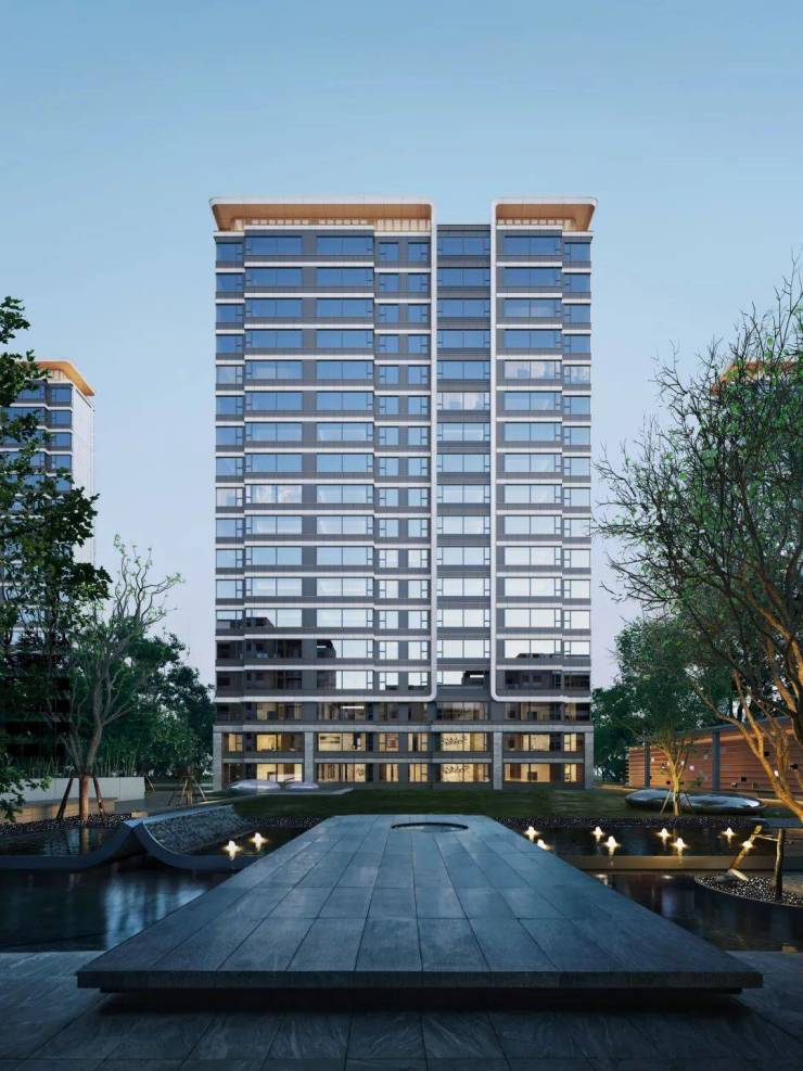 建筑设计:依托城市光幕设计理念,融合 MORDENART 立面风范,以局部金属质感铝板线条领奢居风尚,公建化立面塑造前沿艺术格调。